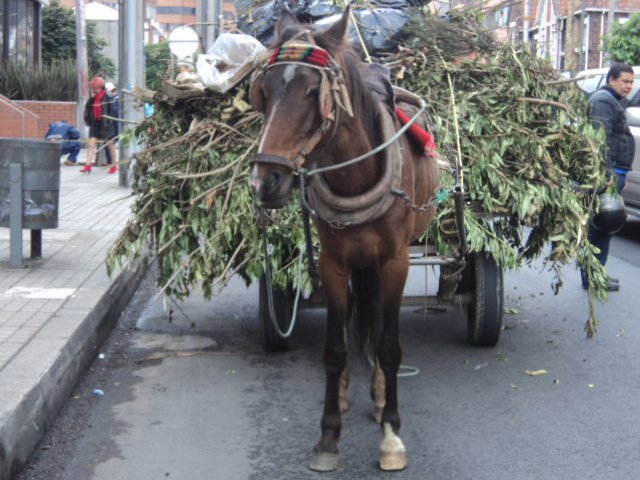En la zona de la 76 con 9 Bogotá un zorrero o carretillero movilizaba una pesada y gran carga de escombros ramas y árboles cortados. Después de recibir una multa aplicada por un policía de transito y gracias a la intervención de fundani pro animales Fabiola Blanco fue obligado a mover el con su propia fuerza la carreta que el pobre caballo debía arrastrar hasta la ADA en donde el caballito quedo en recuperación. Recibir un poco de su propia medicina es a veces más que justo ante la inequidad y crueldad con los pobres caballos.